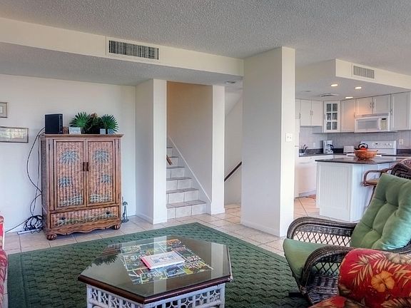 This oceanfront 4 bed/3 bath/3rd floor condo is being offered fully furnished. The tiled foyer entry with utility/laundry room leads you down a flight of stairs to the kitchen, dining, and living areas. The kitchen features custom cabinetry and has been opened up to the dining area which presents panoramic views through large windows. The adjacent living area has balcony access through sliding doors. There are three guest bedrooms; two with twin beds and the other has a queen bed. The two midlevel bedrooms have a shared bath and the third guest room has a private bath. The master bedroom has a king size bed with a private bath. This villa is a stones throw from the beach and Beach Walker pool area. There is under building parking and storage.