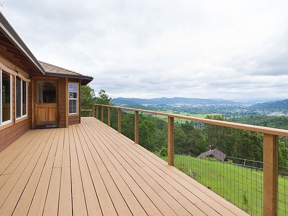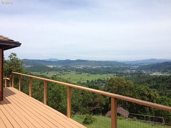 THIS VIEW IS IT! Stunning panorama of the Umpqua Valley and foothills beneath this 3 bedroom home just minutes from town! You'll like the Brazilian koa flooring and updated kitchen and bathrooms with exquisite granite counters and custom fixtures! Expansive decking to relax in privacy, enjoy the view or entertain! Finished detached garage! Ramped walkway to home for easy entry! Private patios with hot tub. Paved driveway.