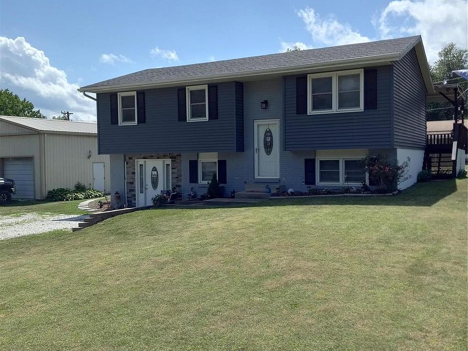 Wanting more finished square footage for the price? Get it in this nicely remodeled bi-level home! 2 Bedrooms upper level with an additional office/nursery adjoining room. Open area for dining/living room plus breakfast room off of the kitchen that leads to double terraced covered deck. Finished lower level with master bedroom and bath plus family room area that has walkout which could be another possible bedroom if needed. Lots of updates and options in this home. Plus not to mention the (42x28) 4 car garage pole barn w/new garage door opener on door. Possible bar area and framed out future bath. Loft area for more storage. A must-see home with Choice Home Warranty $660 policy provided at $189,900 price!!