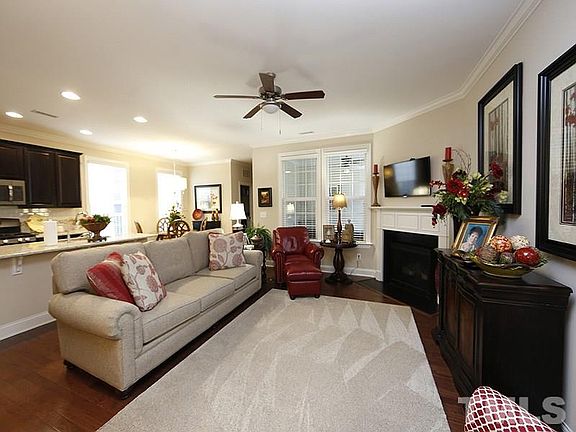 Shows like a model. Over $20K in landscaping w/ lighting. Hardwoods throughout main flr, open flr plan with corner gas fireplace. Private, main flr master w/ 2 walk-in closets. Master bath w/ garden tub/sep shower. Kitchen w/ large island, upgraded stainless appliances (gas range), subway tile backsplash, granite. Moldings throughout. Drop zone. Walk-in closets in upstairs bedrooms, huge bonus with walk-in closet. Ceiling fans. Screened porch. Community amenities. Minutes to I40, downtown Raleigh.