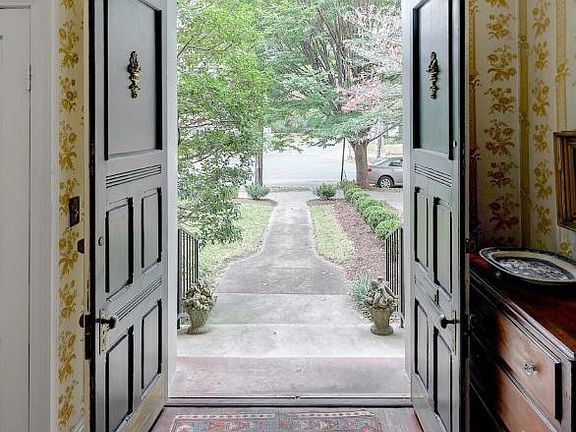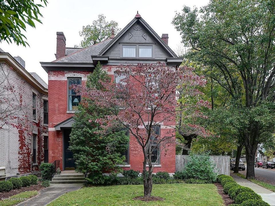 Private retreat in the heart of the city! One of the oldest and loveliest houses in the Cherokee Triangle! Long term owner has maintained this property with many updates. Corner lot with gorgeous side yard, private patio, deck and brick 2 car garage and parking court with driveway on Patterson. This is a spectacular yard with mature landscaping. Tall ceilings, gorgeous pine floors, charming architectural period features, decorative leaded glass, wainscoting, cabinetry and six fireplaces accent the rooms. The kitchen has been updated with stainless steel appliances which remain. Baths include precious powder room and full baths for 2nd and 3rd floors.