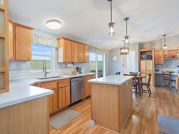 Welcome to your serene escape nestled in the charming town of Arlington, Oregon. This meticulously maintained 2006 Palm Harbor Home offers the perfect blend of modern comfort and breathtaking views. Located atop the town this 3 bedroom with 2 full baths boasts territorial views of the Columbia River. Step inside to discover 1566 square feet of living space. Interior and exterior freshly painted, Trex composite decking, accessible walk in shower, large walk in master closet, sleek quartz countertops and stylish subway tile backsplash. The exterior offers a fully fenced yard, sprinkler system, and motion detection lights. Elevated above town gives you sense of privacy with easy access to interstate I-84. Schedule a showing and see what this home in Arlington has to offer.