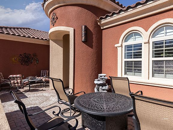 3-BR/2.5BA plus den & attached Casita that's wonderful for crafters, artists, quilters, etc. Casita has sliding door to backyard. Large 1/4 acre lot and $8,000 SIDs are paid-in-full. Mountain views with reverse sunsets from front courtyard. Front entrance has custom glass/wrought iron inlaid front door. Main bedroom, with tray ceiling & fan is located on one side of home. On opposite side of home are 2 bedrooms with Jack-Jill bathroom. 2nd BR has a built in office & wall bed and 3rd BR has the casita. Diagonal laid tile in main areas & plantation shutters. Built-in media cabinet in great rm. Dining room has hand blown chandelier. Large kitchen has island, granite counter tops, lots of counter space, eat-in bar with handblown pendants, SS appliances, double ovens, reverse osmosis & breakfast nook. Revolutionize your cooking experience with a induction cooktop that's better than gas or electric. Kitchen pantry has 2nd refrigerator. Laundry room has sink & cabinets. Covered patio has ceiling fan, extended paver floor & pergola with outdoor kitchen & hot tub. Garage has a mini split heating/cooling system, insulated ceiling, storage cabinets, shelfing & whole house water filter system.