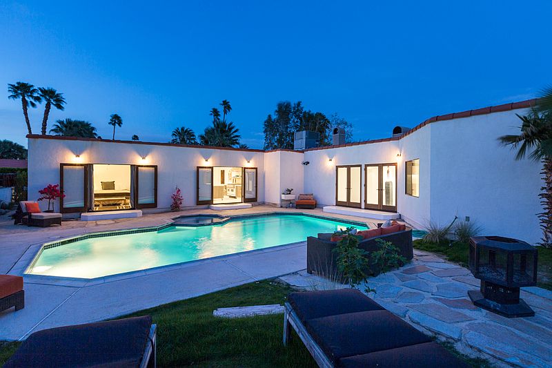 Looking for something fresh and stylish in one of Palm Springs best neighborhoods to own or rent out seasonally? This 1952 Californian Spanish with major new construction and modern industrial chic design is your answer! Private and gated 4 bedroom + family room home is located steps to the park, Bob Hope's former residence, and short bike ride to Uptown/Downtown. Living room with fireplace adjoins the huge gourmet kitchen + dining area that open to the south-facing pool spa. Master Suite has French doors that open to the south-facing pool spa, a walk-in closet plus two wardrobe closets, a private en suite bath with dual sinks, a walk-in shower lined with limestone, and a soaker tub. The West Wing includes Bedroom 2 with French doors that open to a covered patio, Bedroom 3, which looks north to the front yard, and an adjacent bath with a shower/tub combination. The East Wing includes Bedroom 4, the Family Room (OR Bedroom 5), as well as a full bath with walk-in shower.