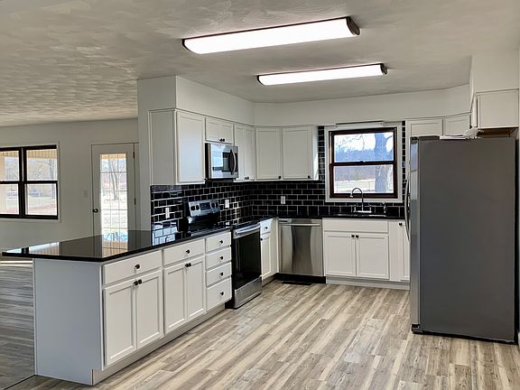 Located just outside the city limits you will find this 3 bedroom 2.5 bath home! This home features many new updates both inside and out. A new garage door, vinyl siding, fascia, soffit, and gutters were installed on the exterior. Outside you will also find a big fenced in back yard with a nice patio, perfect for family gathers or watching the sunset! Once inside you will find new flooring throughout, new custom kitchen cabinets and granite countertops in both the kitchen and full bathrooms! Brand new stainless steel appliances also included! Call us today to schedule a showing or for further information! 765-993-8601