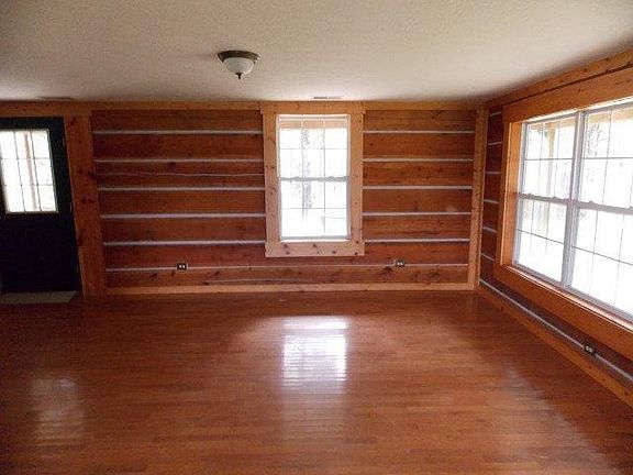 Lovely 1.5 story log home on 5.19 wooded acres! Approaching the home, one will notice the wrap around porch. Inside the master bedroom/bath, laundry/half bath, living room, and kitchen are on the main level. Upstairs are the other two bedrooms and full bath. There is plenty of hardwood flooring throughout the home. Choose FHA financing to qualify for $100 down payment. Ask your agent for details. This property is eligible for 203k financing. Equal Housing Opportunity.