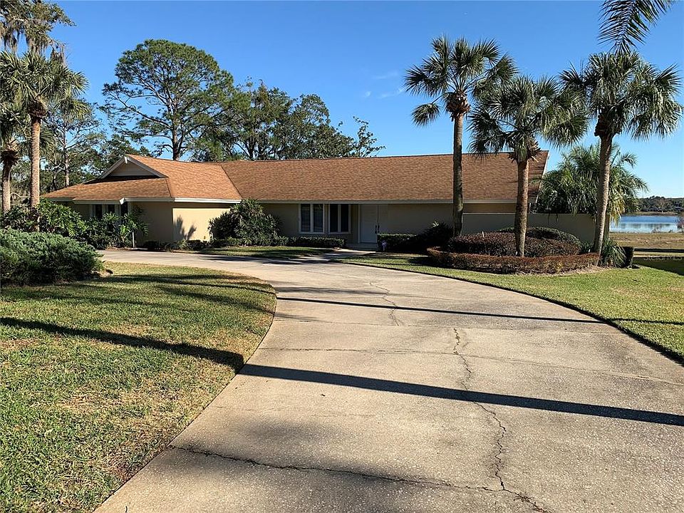 Impressive Waterfront Estate Home!! This is absolutely a house to entertain in! As you walk in through the double-door entry you look across the living room and adjoining dining room to 3 sets of sliders that completely collapse into the wall to open onto the MASSIVE Florida Room and gorgeous view of Lake Alden. Almost every room in the house has an expansive view of the lake and surrounding property. The kitchen, family room and master all have sliders out to the 723 sqft Florida Room that features screen and vinyl windows. All rooms are huge, especially the master bedroom and bathroom which has a jetted tub, separate shower, separate potty room, double vanity with a makeup area and large walk-in closet. This split plan has 2 more bedrooms on the other side of the house, one of which has direct bathroom access. The kitchen has newer stainless appliances and has a large dinette area in addition to a breakfast bar. It is completely open to the family room which has a vaulted ceiling, wood-burning fireplace and 3 more sets of collapsible sliders. There are closets and storage everywhere! The house features a built in Security and intercom system. The oversized 3-car garage awaits your golf cart and the circular driveway has an additional area easily able to house your RV AND boat! The house sits elegantly back off of the road, but still has a humongous back yard on it's over a half acre lot, which can easily accommodate the biggest pool you could want. There are perfectly working sprinklers and landscape lighting on the palm trees. The roof is only a few years old and the house is in great overall condition. This house and lot are fabulous as-is but a bit of paint and carpet will truly make it a stunner! Priced below market, this one WILL go fast!