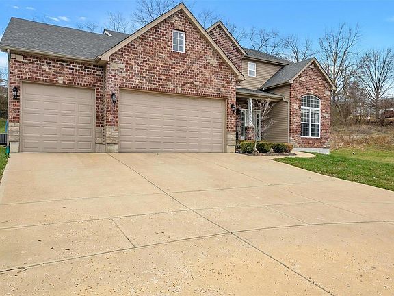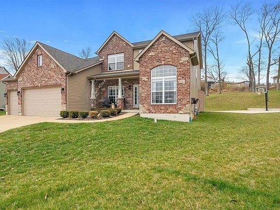 Welcome home to this beautiful 4 br home in Arnold, MO!! A formal living room with 11' ceiling and a spacious dining room divides your spacious entry foyer, leading to the dramatic side, switchback staircase overlooking a 2 story great room with a wall of windows (tinted to reduce heat and sun glare)! Gorgeous kitchen with large island. Popular 1st floor primary suite with separate tub & shower plus split vanities and private water closet. Upstairs offers 3 large bedrooms, all with walk-in closets and 2nd full bath with a spacious balcony overlooking the great room! The backyard offers a basketall court area and a patio for relaxing. The three car garage and inground sprinkler system are added benefits. This home will not last!!