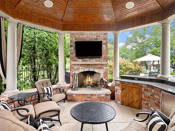 Secluded on a premier 1.2 acre lot backing to trees, sits this impressive 1.5 Sty home. Gorgeous refinished wood flrs & 10ft ceilings throughout the main level. A welcoming 2-Sty foyer leads to study w/French doors, built-in home office & formal dining. 2-Sty great room w/ limestone fireplace has wonderful views of the backyard. Gather around the large eat-in kitchen w/ center island, Wolf/Subzero appliances & granite counters that adjoins the hearth rm w/ stone fireplace & built-in shelves. Spacious main flr primary w/ 2 custom walk-in closets & high-end ensuite. 2 staircases to 2nd flr w/ 3 guest rms, 1 w/ ensuite & 2 share Jack n’ Jill bth. The LL transports you to a mountain lodge & features: 8-seat theatre, 6-seat bar, wine rm, family rm w/stone fireplace, recreation rm w/ built-in shelving, exercise rm & full bth. Enjoy a resort lifestyle in your private backyard w/outdoor living rm w/fireplace, bar & built-in grill; pool & spa; & spacious grassy area. A must see!
