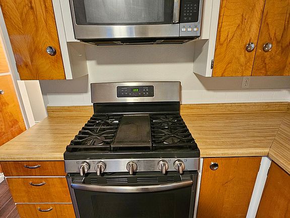 Natural gas heatingStainless steel appliancesWallmounted microwaveWater heater