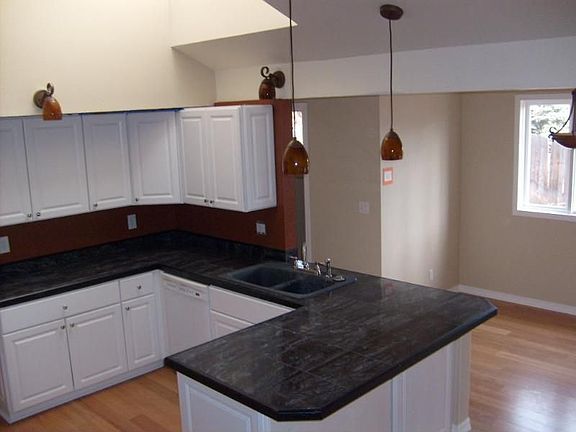 Remodeled home includes American Cherry hardwood floors, custom tiled bathrooms, new wall and baseboard trim, newer carpet, freshly painted. Dining area features wine cooler and updated buffet.