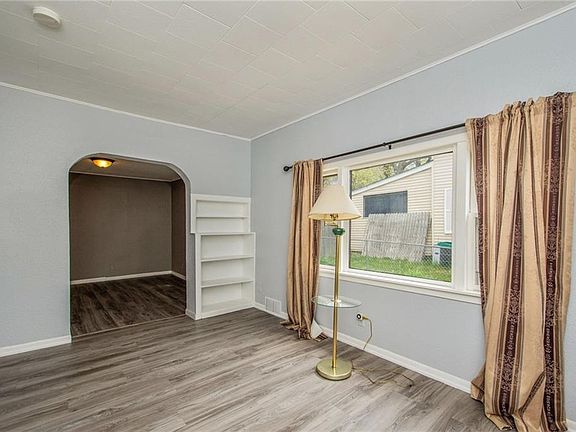 Don't miss out on this absolutely adorable 2 bedroom home, in mint condition! Perfect home & ready for a new owner! Charming front porch with southern exposure & room to enjoy the sunshine all year round! Home has been impeccably maintained & recent updates include new paint, stylish flooring, white trim, some new windows, front storm door & lighting/fans. Enter the living room from front porch & enjoy lots of daylight from the large windows. Arched doorway to formal dining room. White kitchen, gas stove, built in shelving and room for an island or pub table. Full bath just off of kitchen, has been updated. Front bedroom just off living room, 2nd bedroom is in back of home, could be used for den, office, workout room, etc. Unfinished lower level has been professionally waterproofed! Fenced backyard, brick patio & shed included for storage! Seller added exterior faucet for easy watering of the garden & flowers! Close to bus line, shopping & a quick commute to downtown!