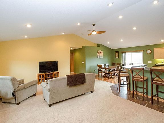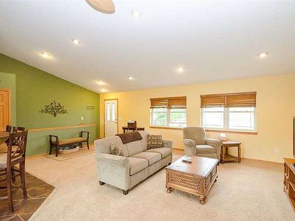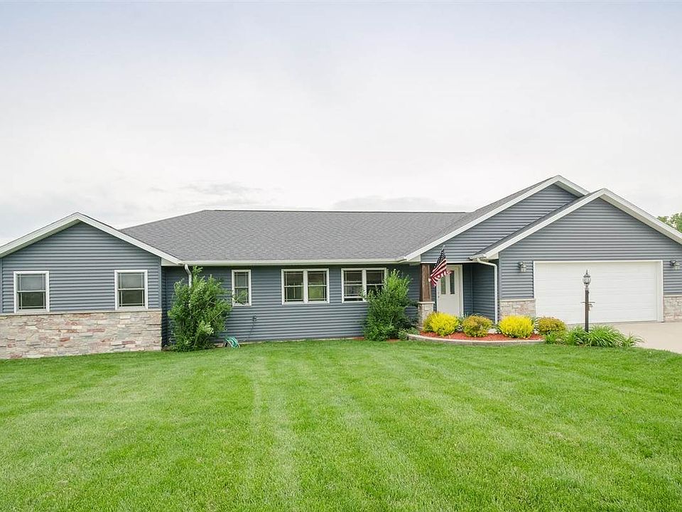 Gorgeous 5 BR, 3 Bath Walk-out Ranch on 1 Acre surrounded by farm ground. Home features an open concept plan with many updates. Vaulted Ceilings, Hardwood floors, Kitchen Bar, ceramic tile, and contemporary colors. Master Bed with large master bath and walk-in closet. LL has 2 bedrooms, over-sized family room with wood burning fireplace. Custom wet-bar in lower level. 20 x 18 flagstone patio and deck. Veg. garden, established trees, and an invisible dog fence.Finished sqft estimate based on recent appraisal