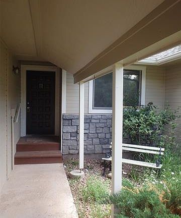 Cute rancher with wonderful views of Pikes Peak and city views of Woodland Park on over 1/3 acre in town. New paint inside and out, new LPV flooring and new carpet, just ready for you to move in. Lovely living room with bay window, built-in bookshelves and cabinet storage for games, and double sided rock surround fireplace. Efficient kitchen with lots of storage and counter space and adjacent to dining area with the other side of the fireplace. Inviting deck is just steps out the dining room door for alfresco dining. Deck has stairs down to the wildflower filled fenced back yard and entrance to the huge crawl space, the whole size of the house with a concrete floor. Master bedroom has a great alcove for dresser or TV area and has an adjacent and spacious 3/4 bath. The other 2 bedrooms share the hall bath and look out at the wildflower filled front yard. This home has a large 2 car garage, which is accessed by a newly re-paved driveway. Come see the views, the trees, the wildflowers, while living in a wonderful ranch style home.