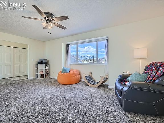 Don't miss out on this exceptional home in a superb neighborhood boasting stunning views of Pikes Peak and the mountain range. This 4-level house features 3 bedrooms, 2 bathrooms, and an unfinished basement awaiting your personal touch. The home is move-in ready, with numerous updates reflecting true homeownership pride. The kitchen is equipped with stainless steel appliances, including a refrigerator, stove, dishwasher, and microwave, perfect for culinary adventures. Unwind in the expansive walk-out family room with a cozy gas brick fireplace, ideal for hosting or movie nights. Retreat to the generous primary bedroom, offering two spacious closets and an exquisite 5-piece ensuite bathroom. All situated on a large, serene cul-de-sac lot with picturesque mountain vistas. With close proximity to a library, gym, pool, parks, and schools, this home is a gem. Come take a look, schedule a tour, and make us an offer!