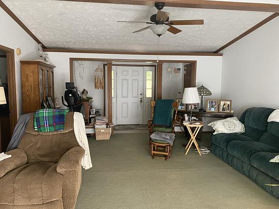 Is quiet country living calling your name? This 3-bedroom, 2-bathroom manufactured home with over 2 acres could be yours. Featuring a nice long drive surrounded by mature landscaping. Enjoy the new deck located at the main entrance of the home. The front door vestibule has closets on both sides of the entrance. The large living room offers a great space to relax and enjoy your home and has sliding glass doors that open to a deck and backyard. The kitchen is spacious with a nice amount of cabinetry and a kitchen island. The dining room sits off the kitchen accommodating a large dining room table and has a large hutch that coordinates with the kitchen cabinetry. One full bathroom, 2 bedrooms and the laundry room are all located just off the kitchen. The primary bedroom and ensuite bathroom sit off the family room. The 2.5 attached garage is an added convenience and offers a great amount of storage space. Call today for your showing.