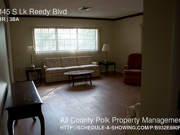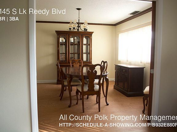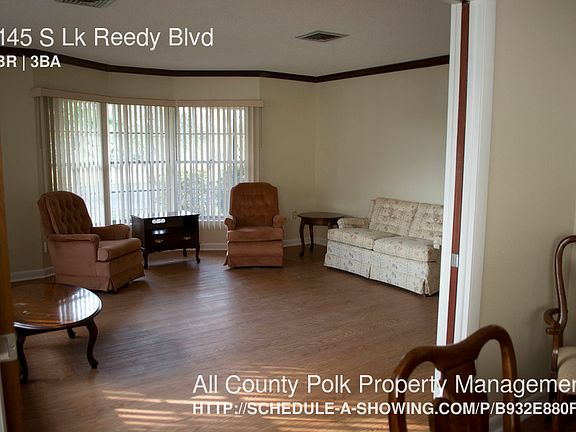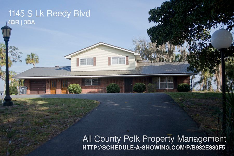 SCHEDULE A SHOWING ONLINE AT: showmojo.com/lh/b932e880f5 This beautiful lakefront 4 bedroom 3 bath 2 story house has over 2,400 heated square feet. The home sits on over 2 acres right on Gorgeous Lake Reedy. Off the back of the home is a private custom 2 story dock for tenant use. There is also a motor home pad for parking a motor home. This home is currently furnished and can be rented furnished or the furniture can be removed. Renters Insurance Will Be Required for the Full Term of the Lease. Dogs ok no cats. $200 move in/administration fee due upon lease signing. Please note, while our Franchise Site may flow out to many different For Rent sites, it will not post our listings on Craigslist. Please be aware of scammers. All of our available listings are properly marketed on our managed website, www.allcountypolk.com.