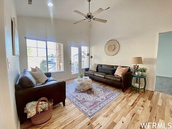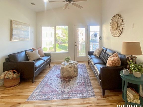 Highly desirable Canyon Meadow Condo! This updated condo features 3 bedrooms 2 bathrooms, single car garage, vaulted ceilings, new carpet and paint throughout. Real wood floors just refinished. Enjoy the pool, clubhouse, gym, and playground included with the HOA. Easy access to the freeway, downtown Provo, BYU, shopping, restaurants and trails. AMAZING views of the lake and valley. This condo is a must see!! Open House Saturday June 12th 11-1pm