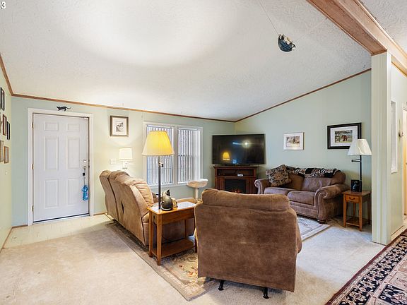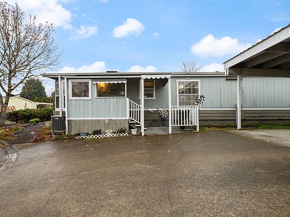 This 1992 Fleetwood has a spacious floor plan with many upgrades. Within the last 2 years a new roof was installed plus a new water heater, laminate flooring in kitchen and 2 bedrooms. The master has a garden tub. The sale includes a free-standing refrigerator, washer/dryer and microwave. Step outside to a 10x14 deck surrounded by 6 mature fruit bearing trees. Also, a large storage shed/shop with workbench. This home is being sold in as is condition. MOTIVATED SELLER. QUICK CLOSE. Call or text listing agent for your appointment to see this wonderful home today. Monthly park fee is $935/month.