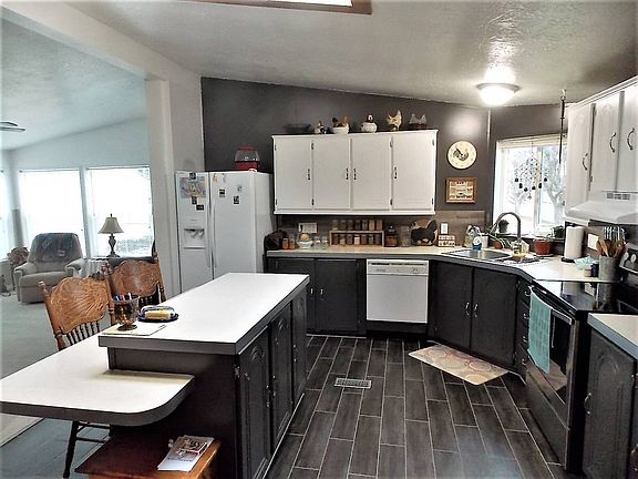 PRICE REDUCED!! Welcome home to this gorgeous 3 bedroom, 2 bath, Fleetwood. This is a manufactured home on rented land (in a park) and NO land is involved with the sale of this home. This wonderful, meticulously maintained home offers approximately 1557 SF of room and its features include split living and family room areas, with paddle fan in the family room, updated lighting in the dining room, updated island kitchen with tile floors, skylight, glass top stove and large pantry, walk in closet in the master bedroom and updated cabinetry and linen closet in the master bath. Vinyl windows, updated 6 panel doors, newer roof, water heater and heat pump.? Vinyl siding.? Washer and dryer stay. ?Living room measures approximately 11x17', family room 12x15', dining room 13x11', kitchen 11x16', master bedroom 13x13', 2nd bedroom 10x9.5' and 3rd bedroom 9x9'. ?Back covered deck measures approximately 6x24', patio 10x14', storage building 6x18' and 18x22' carport. Tie downs. Heat pump for economical heating and cooling. Pet Policy: 2 Pets with management approval. Space rent for this unit is approximately $630 per month.