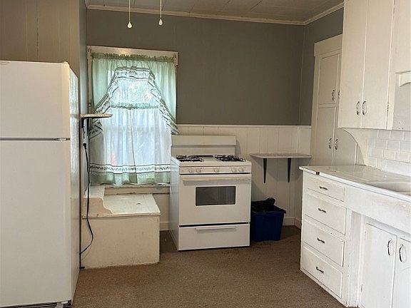Update features include: Gas furnace with C/A-2023, Painting throughout the house-2023, Metal Roof-2019, All new water lines and faucets-2018, hot water tank-2016 and updated 100 amp electric panel. House sits at the back of the lot giving you plenty of play room in the front yard. Glazed tiled walls in the basement. Average utilities - Gas $109 monthly budget, Electric $34 to $85 month, and water, sewer & trash- $38 to $49 month. Seller is having a new screen door on the porch installed on Aug. 14th. Don't let this one slip by! Call today!