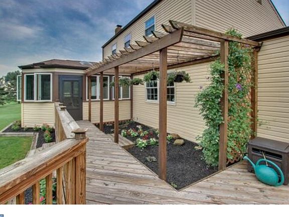 Gorgeous showstopper! Blue Bell home with Belgium Block lined driveway, grounds meticulously landscaped with flowers and shrubs on all sides showcasing an amazing expanded deck and just newer fabulous octagonal sunroom for extended outdoor/indoor living! This home has unbeatable curb appeal and comfort! Begin at the center hall entrance to view living room and dining room with included custom window treatments, hardwood and great picture windows. The bright breakfast room off the granite kitchen fills with light from the huge picture window overlooking the deck. The family room showcases a brick gas fireplace and entrance to the most delightful octagonal sunroom surrounded by windows & screens & fans for the warmer days. First floor laundry. Upstairs a huge master bedroom with large walk-in closet & master bath plus 2 additional bedrooms and hall bath. The list of upgrades is extensive: NEW rain gutters, NEW aluminum edging in gutters, NEW vinyl siding, DECK all replaced, sunroom added, Newer doors & windows & tile, New carpets, NEWer roof, NEW Heater, New hot water tank and the list continues. 2 car garage. Acclaimed Wissahickon Schools! The right side of arborvitaes & birdhouses is township property.