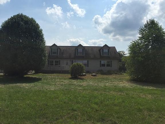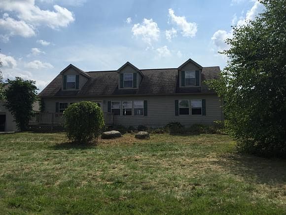 Private , peaceful , country living in this 4 bedroom, 2 bath cape situated on 10 acres with a pond. The open floor plan features a large oak kitchen, dining room that leads out to private deck overlooking fenced in rear lawn with play structure. Two bedrooms on the main level and two more bedrooms upstairs with potential for 3rd bath . Two car garage with second floor storage or work space, plus other outbuildings.