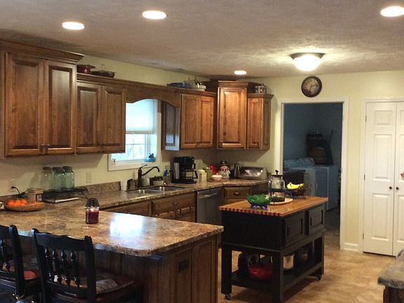 A beautiful ranch home that sits in a quite country setting only 15 minutes south of Owensboro. This home is built on 5.9 acres with a 24x45 wood frame barn with metal siding and electric. This home is every chef's dream with a beautiful large kitchen that has Amish cabinets and stainless steel appliances. This home has an open floor plan with split bedroom concept. Each bedroom contains oversized closets. New wood floors were installed in the living room, dining room and 3 bedrooms in 2016, with the bathrooms, laundry and kitchen having tile flooring. The laundry is oversized and contains Amish cabinets with ample storage and countertop allowing you to fold laundry. You can sit on either one of the 8x45 foot covered porches and watch the birds and deer while enjoying your coffee under the breeze of the ceiling fan. This home contains an attached 2 car oversized garage. You won't be disappointed with this beautiful property. It also has a 24 x 36 workshop.