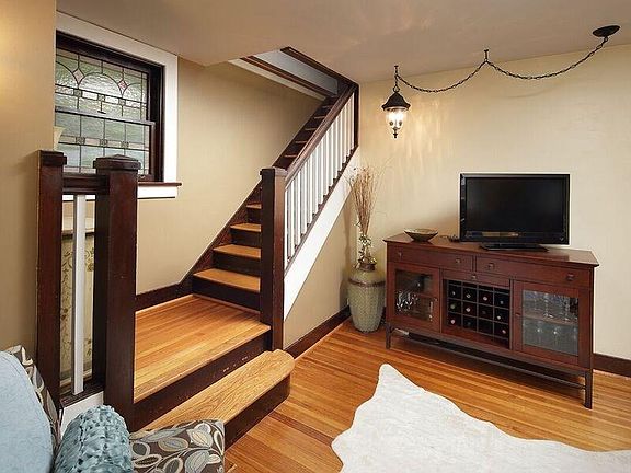 Stone Bungalow style, but deceptively spacious! High ceilings, lots of windows and light, old world character and quality inside and out with updates for today's living. Beautiful woodwork and floors, new equipped white kitchen, central air, cottage garden, and off-street parking pad. Lots of closets and storage galore! Additional room is entry, but functions as a den or sitting area. Great location. Minutes to downtown, shopping, schools.