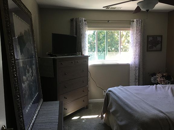 This custom and updated home is in the heart of the Livermore wine country, close enough to walk to downtown or a short ride from the Lab. It is safe, on a family-friendly private court, and is both quiet and peaceful. The large backyard has a huge shed, a spa, and a stamped concrete patio with a large grassy area perfect for children or entertaining. Inside you will find three well-sized bedrooms, two and a half baths, and a spacious living room with wall-to-wall windowed sliders. The living room has a large 70" TV and an updated fireplace with a pellet stove. It is the perfect place to have family evenings or entertain and live in. A well-appointed kitchen includes stainless steel appliances (2 years old) and granite countertops. The house also has a laundry chute, newer carpets in the bedrooms and hallways, and tile flooring throughout the kitchen and bathrooms. Recent updates include: Brand new paint inside and out, remodeled bathrooms, updated cabinets, and new carpet. Other recent updates include brand new solar panels, newer roof, energy-efficient windows, a quiet 2-car garage door, newer washer and dryer, newer HVAC, and a remote-controlled thermostat. 1-12-month initial lease, then either month-to-month or 6-month terms after that -Security deposit due with first month's rent