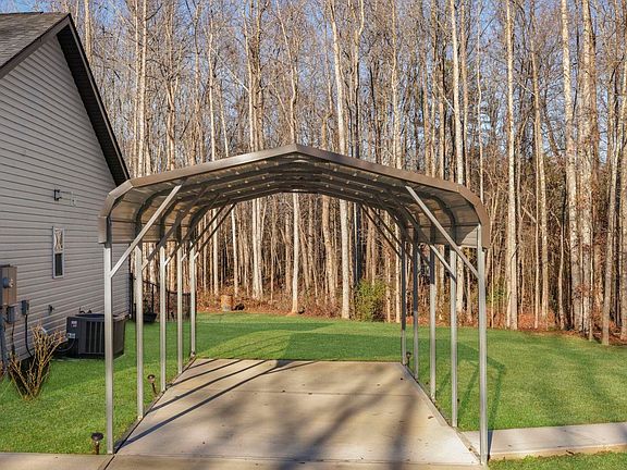 Built in 2024, this thoughtfully crafted home tells a story of modern living designed with intention, comfort, and freedom in mind. From the moment you arrive, the landscaped grounds create a welcoming first impression, setting the tone for a home that feels both polished and peaceful. Step inside and notice how natural light filters through custom plantation shutters, highlighting an open floor plan that invites connection. The living and dining spaces flow effortlessly together, anchored by a cozy fireplace that becomes the heart of the home—perfect for quiet evenings or gathering with friends and family. The kitchen is where everyday living shines. Whirlpool stainless steel appliances, including a side-by-side refrigerator and self-cleaning oven, pair beautifully with a double quartz sink and granite countertops. Thoughtfully designed cabinetry with sliding shelves and built-in racks keeps everything within reach, making both daily routines and entertaining feel effortless. The main-level owner’s suite offers a private retreat at the end of the day. Designed for comfort and ease, it features a spacious walk-in closet and an upgraded bath with a glass-enclosed shower, built-in seat, and refined finishes that create a spa-like atmosphere. A split bedroom plan provides flexibility and privacy for guests, hobbies, or additional living space. Outdoor living is just as inviting. A covered patio overlooks a fenced yard that backs to the woods, offering a serene backdrop and a sense of calm that’s hard to find. Whether enjoying a quiet morning coffee or winding down in the evening, this space feels like a personal escape surrounded by nature. Practical details are thoughtfully woven throughout the home. First-floor laundry adds convenience, attic storage is easily accessible with disappearing stairs, and gutters with leaf guards offer low-maintenance living. The 12x24 outbuilding with a built-in workbench provides space for projects, storage, or creative pursuits. Parking and flexibility are well-planned with a two-car attached garage, an attached 12x24 carport with approximately seven-foot clearance, an extra paved parking pad, and a concrete driveway. One of the most valuable features of this property is the freedom it offers—no homeowners association and no known restrictions—allowing flexibility in how the property is enjoyed and used. This home is more than a collection of features. It’s a place where thoughtful design, modern upgrades, and a peaceful setting come together to support the way life is meant to be lived—comfortable, intentional, and unhurried.