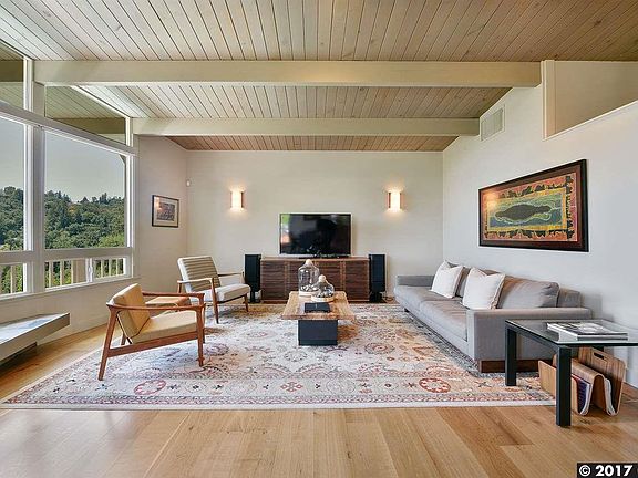 This updated and meticulously maintained mid-century modern home features clean lines, beautiful natural light through large picture windows, and amazing and rare Western-facing views. The .59-acre sun-drenched lot is complete with level lawn, deck, pool, spa patio, and gardens, perfect for both relaxing and entertaining. The property boasts high end finishes, thoughtful layout and design, and a bonus family room with mini kitchen for easy indoor/outdoor living. The coveted Happy Valley neighborhood is close to town, shops, restaurants, trails, award-winning schools, the Lafayette Reservoir, Oakwood Athletic Club, BART, and commute routes. A+ location!