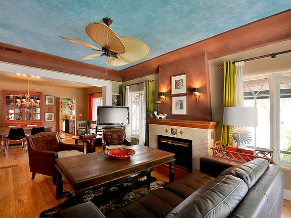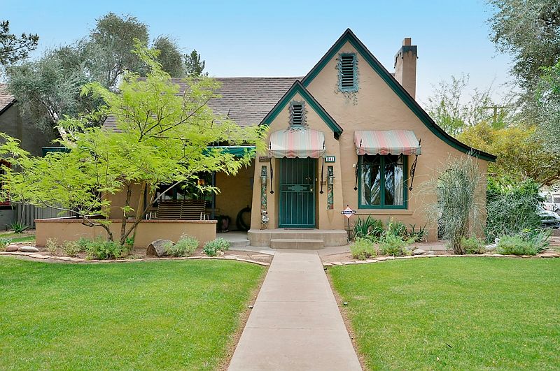 This spectacular three bedroom tudor revival was recently featured in the annual F Q Story Home Tour. The living room features plaster molding, fireplace with wood mantel, built-in bookcases, original windows and tropical ceiling fan. The dining room has a coved ceiling, chandelier and large picture window. The kitchen has wood cabinets, travertine floor and adjacent laundry room. The hall bath has crown molding, original cabinet and two windows. In the three bedrooms are features including; picture rails, original doors, glass knobs, built-in chest of drawers, wood shutters and built-in ironing board. This room also features a basement offering plenty of storage. Exterior features include a garage, zen-like backyard, front and back lawns, mature trees and a covered patio.