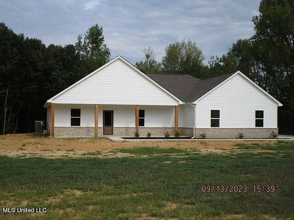 This home is in Tate county. Beautiful new brick home. Move-in Ready! Sits on 3 +/- acres in the country, only 20 mins from I-55 at Senatobia. 1800 sq ft with dbl garage that is insulated. Has a split bedroom plan. Kitchen, dining room and living room combo. Kitchen has 9 ft ceiling and Stainless GE appliances. Living room has fireplace with gas logs and vaulted ceiling. Stained concrete flooring throughout. All counters are granite. Master bath has nice tub with ceramic tile surrounding, sperate shower with ceramic tile surrounding, as well as his and her vanities. Large Master BR with large closet with hanging rods and wood shelving. There is a half bath as well as a walk-in pantry in the hallway. On the other side of the home, there are 2 more BRs and a full bath in the hallway with granite countertops. Large laundry room. Covered back porch. Architectual shingles. Electricity by TVEPA.Bring all offers