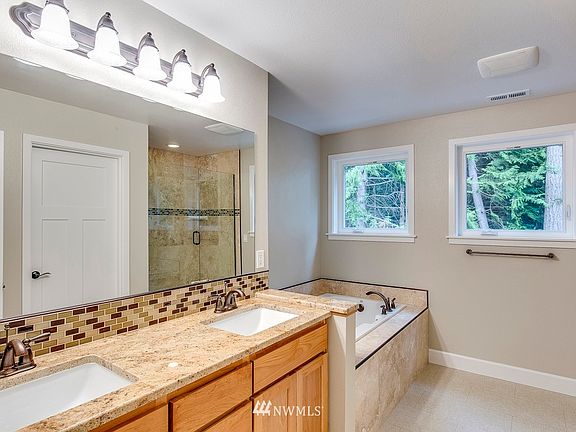 Just Completed Beautiful New Construction By Ferguson & Cole. Gorgeous solid hardwood floors through the entry, kitchen, dining and great room. Gourmet kitchen with 9 foot ceilings, custom stainless steel appliances, slab granite counters, soft-close alder cabinets and walk-in pantry. Master bedroom with 5 piece bathroom en-suite. High efficiency heating and cooling. Large shy acre lot with keyless entry 3 car garage located near Battle Point Park. Renowned Bainbridge Island School District.