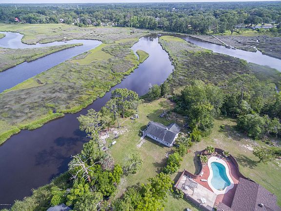 DEEP WATER STUNNING WATERFRONT 4.98 ACRE PROPERTY WITH BREATHTAKING VIEWS! This is a very special property, you will feel it once you step out of your vehicle and are greeted with wide creek and marsh views. Peace and serenity guaranteed with approx. 460 feet of wide Dunns Creek Frontage. The property consists of two homes. The main house is a 1-story 1 bedroom 1 bath bungalow built in 1954. The guest house was built in 1969. It is a 2-story home with two 1-bedroom, 1-bath up/down setup. There is approx. 3.35 acres of salt marsh buffer, increasing your privacy and magnificent views. Fish from your creek bank just outside your front door. Watch the wildlife including Manatees and Dolphins. Boater and fishing paradise, see plans for a dock.