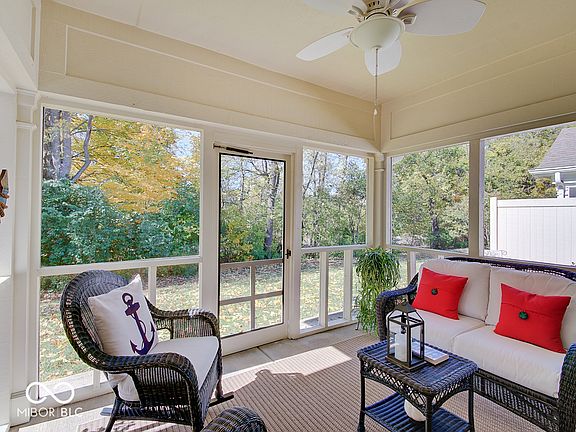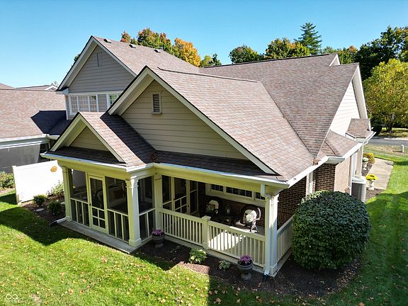 It's so hard to find nice, low-maintenance condos that don't require steps to get to the main living areas and primary bedroom. You've found it, in a prime location just steps off the Monon Trail! Zero steps to enter this paired upscale condo from the garage or the front door. Hardwood flooring from the two-story entry through the kitchen with granite counters and stainless appliances, all in pristine condition. The soaring vaulted ceiling in the family and living rooms let in tons of natural light and make the living area feel big! The screened porch and covered patio (yes, there are both) have views of the mature trees surrounding the Monon Trail. The primary suite is on the main level, featuring a tray ceiling in the bedroom and a remodeled bathroom with a large, custom tile shower and granite double vanity. A dedicated office with french doors and closet, an additional main level bedroom and laundry room complete the main level. Upstairs you'll find a loft for additional living space, a third bedroom and full bathroom plus a large, finished storage room! Located close to 116th St and Rangeline Rd for easy access to everything in Carmel. Step out the back door onto the Monon Trail to get your steps in, and it's exactly half a mile to the Monon Center for every fitness activity! Monon Farms is perfect for the "lock and leave" lifestyle - the HOA mows the grass, removes the snow and is responsible for exterior building maintenance! 100% neutral and 110% spotless, this home is move-in ready!