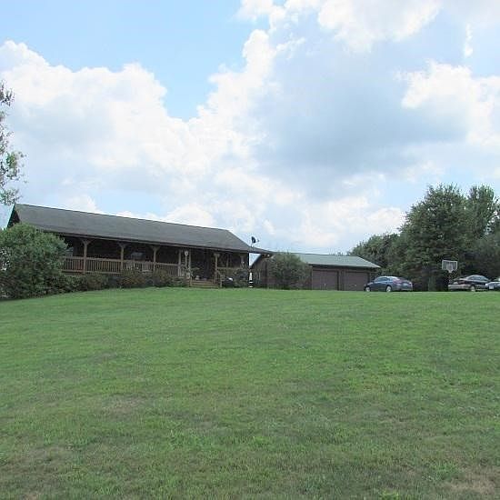 Beautiful area dotted with Lg Homes. Hilltop views, watch multiple fireworks displays 7/4 on front dk. 5 Ac w/barn,stall, fenced pasture for cows etc, fenced chicken area,2 apple trees, DETACHED 2 CAR GARAGE. Some woods @ rear of property. Open,stunning LVRM, Kit.& DN area enhanced with stone walls, stone FP. Walk out L L, fully finished, approx. 1,200 sqft,W/FmRm, Lg full Ba , ExLg BdRm, a work-out area. 2- 40 ft decks front and back to enjoy exceptional views. Abe Lincoln Log Home. Surveyed in 2000. Windstream internet and Dish Network available.24 Hour notice to show