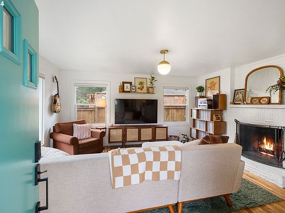 Stylish Midcentury Ranch on an expansive 10,000 sq ft lot, featuring a versatile floor plan. The main level offers 2 bedrooms and 1 bathroom, complemented by hardwood floors, a fireplace, and built-ins. The kitchen showcases modern updates with quartz countertops, a tile backsplash, stainless steel range and dishwasher, and a Fisher & Paykel refrigerator. Discover added functionality in the finished basement with exterior access, providing an ideal space for remote work or multigenerational living. An attached garage and heated studio deliver exceptional areas for work, hobbies, and storage. Step outside to a large covered patio, perfect for year-round entertaining. The mature landscaping creates a picturesque setting, and the backyard serves as a private retreat. Conveniently located with a Walk Score of 70 and a Bike Score of 84, this property blends style, comfort, and functionality seamlessly. Your Midcentury dream home awaits! [Home Energy Score = 5. HES Report at https://rpt.greenbuildingregistry.com/hes/OR10124428]