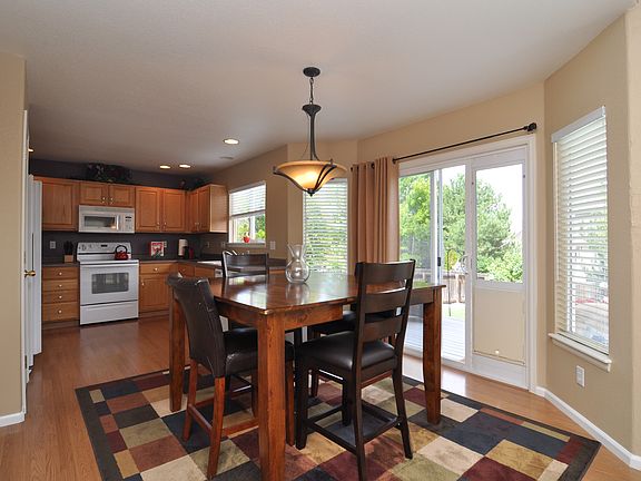 You do not want to miss this stunning Parker home with gorgeous mountain views! Charming covered front porch, desirable exterior paint colors, luscious green grass, and beautiful mature landscaping create much desired curb appeal from the moment you arrive! Interior featuring neutral paint colors, and big bright windows that flood the space with natural light creating a warm, welcoming feel. Spacious family room with plush carpeting and a gas log fireplace, perfect for keeping warm during the chilly Colorado winters! Eat in kitchen with matching white appliances, pantry, tons of cabinet and counter space, and gleaming hardwood floors. Master suite with spacious private master bathroom. Finished basement with bedroom and bathroom adds tons of additional living space! Beautiful fenced backyard with big trees, sprinkler system, and a gorgeous deck perfect for relaxing or entertaining. Attached 2 car garage. This home wont last, schedule your showing today! Seller is offering a $3000 carpet allowance with a strong offer.