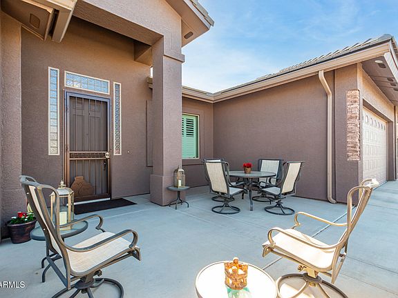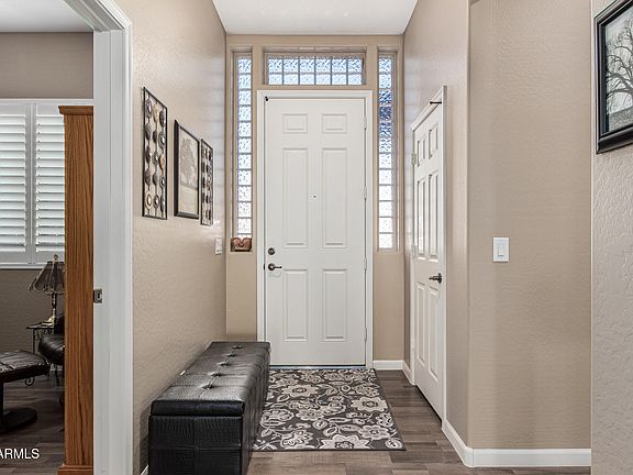 FULL FOUR. CAR. GARAGE! With a hydraulic lift! This spectacular 2 bedroom plus den home showcases an exquisite curb appeal with a desert landscaping and a view of the Superstitions. Large, open floor plan with tall ceilings, recessed lighting, plantation shutters, and wood-look LVP flooring. This 1850 floor plan flows between areas, perfect for entertaining. The living room is filled with natural light, with a comforting feel. . The kitchen features staggered wood cabinets, granite counters, SS appliances, and an island with breakfast bar. The master bed with en suite bathroom has dual split vanity, a walk-in closet, and a glass block walk-in shower. Fenced back yard with an RV gate. The home has been impeccably cared for and it shows! the laundry room has a utility sink, and the oversized garage has an overheight ceiling & epoxy flooring. The backyard offers a covered patio, extended pavers, and an RV gate. You don't want to miss this fare find on one of Mesa's most popular active adult communities. Act now!