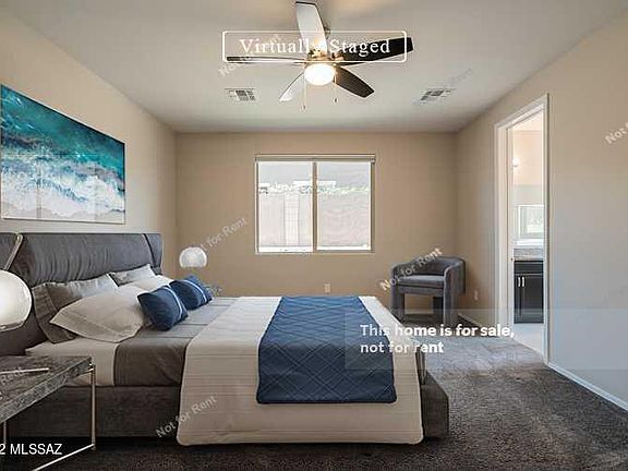 4 bedroom, 3 bathroom stunner in Tucson! Enjoy preparing meals in this impressive kitchen equipped with ample cabinets, updated counters, tiled-backsplash, stainless steel appliances and a breakfast bar. Discover a bright interior with neutral tile floors and plush carpet in all the right places. A luxurious primary suite, complete with a walk-in closet, and a private bathroom with dual sinks. Entertain on the back patio, perfect for barbecues. Don't wait! Make this beautiful home yours today.