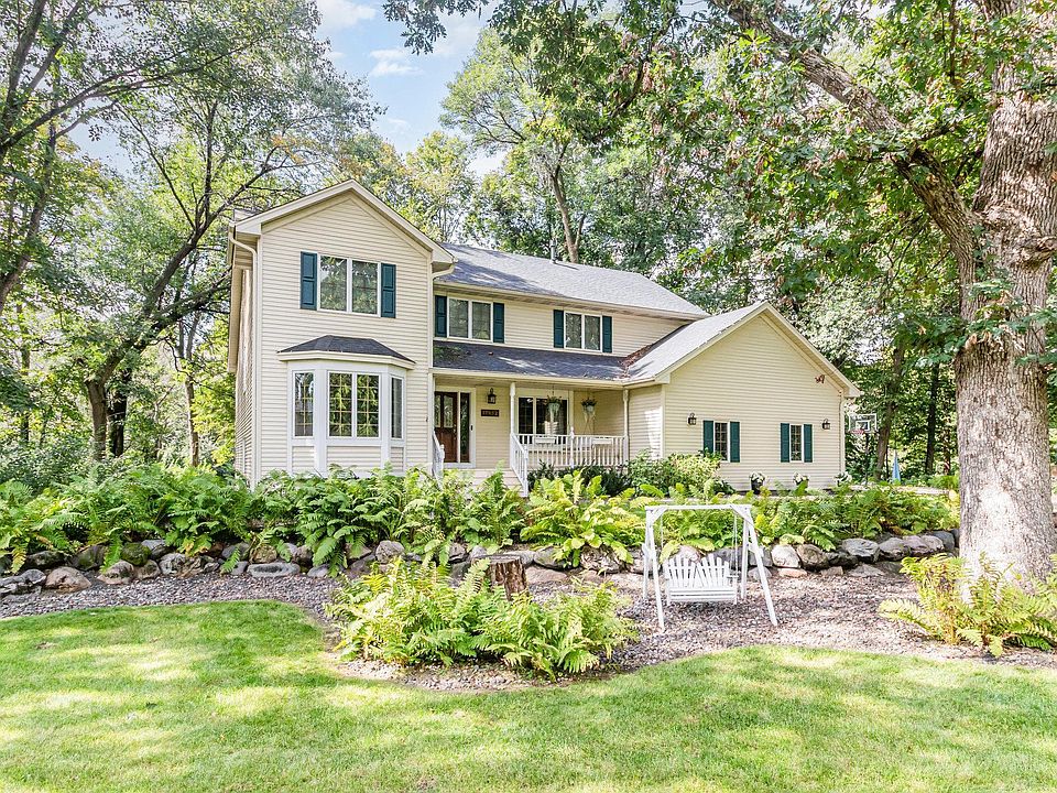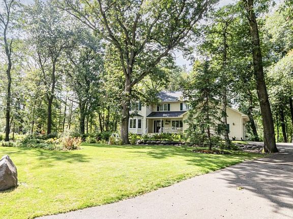PRICED to SELL!! Very seldom do homes become available in this exclusive neighborhood of North Oaks West in Blaine offering wooded acreage and privacy. Welcome to this beautiful Hanson-built two-story home, offering timeless design, quality craftsmanship, and an abundance of space for both everyday living and entertaining. Nestled on a private wooded lot in a peaceful cul-de-sac, this property combines storybook curb appeal with modern comfort. A charming front porch with swing welcomes you inside to a spacious foyer, setting the tone for the warm and inviting spaces throughout. The main level features a flexible front room perfect as a music space, library, or home office, alongside a formal dining room filled with natural light from the large picture window both boasting glass French doors. The heart of the home is the kitchen, showcasing granite countertops, abundance of cabinetry, newer stainless steel appliances, and a center island, all opening to an informal dining space and screened porch for seamless indoor-outdoor living. A cozy family room with vaulted ceilings, soaring windows, and a brick fireplace creates the perfect place to gather year-round.