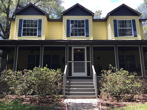 This beautiful home is situated in the middle of 9.4 wooded acres, fenced on two sides. The property is located just 3½ miles from downtown Brooksville yet tucked away in a serene woodland setting on a privately-owned road-no through traffic. The first floor features a wood burning fireplace in the living room, a formal dining room with a bay window, a large laundry room with adjacent full bathroom, and a family room. The newly remodeled spacious kitchen in 2017 has lots of cabinet storage, a large walk-in pantry, all stainless steel appliances, gas cooktop, wall oven, refrigerator and dishwasher all brand new in 2017. The flooring is newly installed in 2017 high quality, durable, wood laminate. Tile floors in kitchen, laundry, and bath. Outside the kitchen door is a small pond, patio and above ground pool. Large covered screened porches span the width of the front and back of the house. The second floor features a roomy master suite with two closets, a dressing area, and double sinks. Three bedrooms share a bath complete with a laundry chute. The fifth bedroom has a private bathroom. The house also features insulated, double-paned, vinyl, single-hung windows which are argon gas-filled with lifetime warranty, all solid wood interior doors, under-stair storage, and many windows offering lots of natural light throughout. Outside is a two-car, carport/pole barn, a 12 by 32 storage shed, and a 2-story bonus building. The bonus building is drywalled and both floors contain a window AC. House siding is hardy board