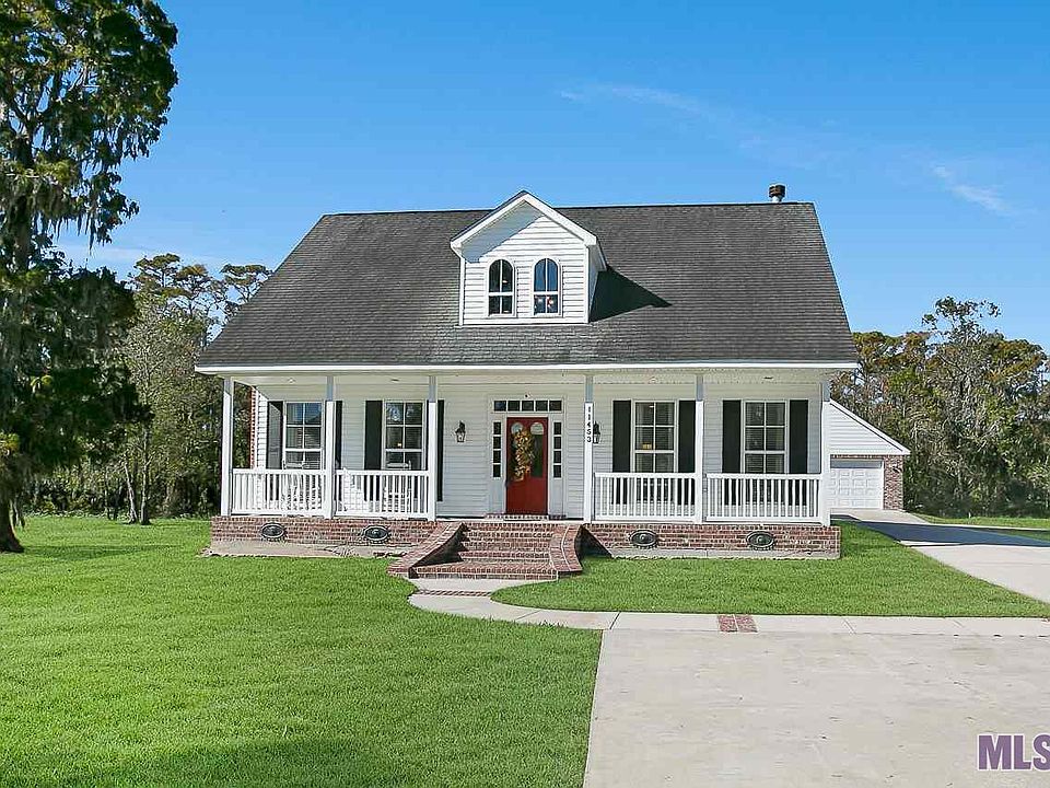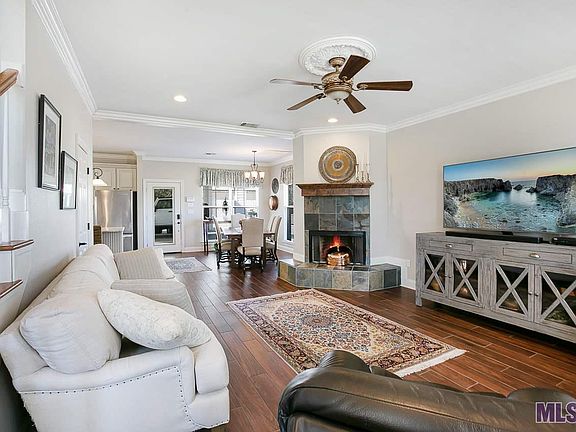 Enjoy this quiet piece of the country on .95 acres. Quaint 2 story home with brick steps and front porch for relaxing afternoons in the shade. For those who like a foyer, this one has it! While in the foyer, you can access the stairway to the spare bedrooms and office space, or enter the living room. Wood style plank ceramic tile throughout the downstairs, open floor plan, wood burning corner fireplace, formal dining room, and kitchen with tropical granite and gas cooktop. The main suite is off the hallway past the kitchen. The main bedroom also has the wood style ceramic tile, ceiling fan and ensuite bath. This main bathroom has double vanity, tropical granite, jetted tub, separate shower and walk in closet. This home has extra storage both upstairs and downstairs! The owner has added the crown jewel of Ascension Parish, the WORKSHOP/MANCAVE (34'x24')! Long driveway past the house you will access this extra garage space and storage or workspace. It is quite the space, you must come see all it offers!