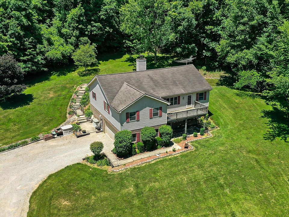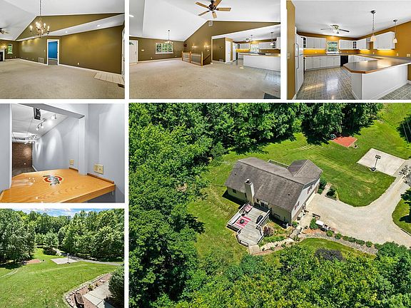 Walk the 3D Tour of ''Highland Hideaway'' Enjoy the seclusion of 21/2 acres surrounded by trees in the amazing raised ranch home. The main level has an open floor plan with a vaulted great room that is open to the dining room and the kitchen. The kitchen has tons of cabinets for storage and a peninsula perfect for bar seating. Both bedrooms on the main level have their own attached bathrooms, creating multiple suites. The walkout lower level has two more bedrooms that share a third full bathroom and there is a large rec room down here as well. This will be perfect for overnight guests or even a teen suite because they can have their own level. There is a large deck out back where you can have cookouts or relax under the stars and an elevated deck out front overlooking the basketball court.