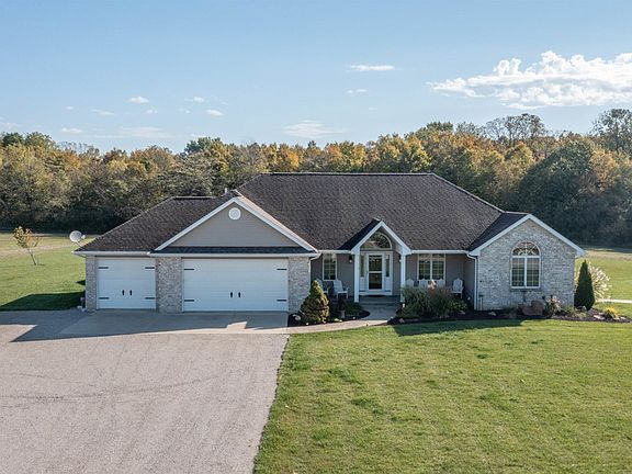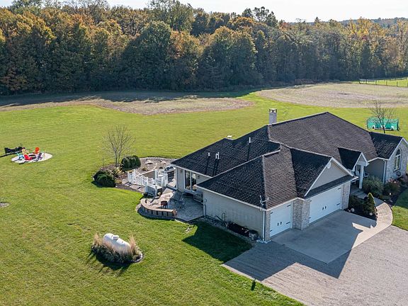Presenting a 23 acre unique, private equestrian property, approximately 4 miles south of 469, close to southwest Fort Wayne, Roanoke and Huntington. Situated down a winding driveway of fenced pastures and outdoor arena, backed by mature woods with trails, you will find a custom ranch with finished lower level with an additional kitchen. Perfect package with all appliances included in this custom built home. Over 11,000 sq. ft. barn includes heated tack room with bathroom, 11 stalls, indoor arena and all the amenities you can imagine for horses.