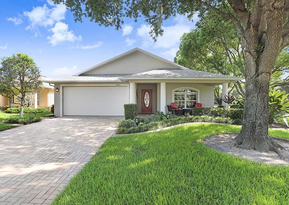 Within the gates of the esteemed 55+ community of Cross Creek at Summertree located in New Port Richey, Florida, lies a residence that embodies the epitome of meticulous design and warmth. This pristine, single-family gem, spanning 1,643 square feet, weaves together comfort, elegance, and an unmistakable "homey" aura that beckons from the moment one steps through its doors. The foundation of this 3BR/2BA/2-car garage abode is the undeniable pride of ownership that's evident in every nook and cranny. From its location on a .30-acre landscaped corner lot with a mesmerizing pond view and a generous 90 feet of water frontage, to its gourmet kitchen adorned with Corian counters, modern cabinetry, and top-tier stainless appliances, it's clear: this is a haven sculpted with love and care. Every space in this home tells a story. The expansive master bedroom, with its spacious walk-in closets, promises rest and rejuvenation. The covered front porch, laid with artful pavers, beckons quiet morning coffees or sunset reflections. As you move further in, the enclosed Florida room with its acrylic sliding windows offers a serene retreat, echoing the home's open and spacious split floor plan. From the comforting embrace of carpet & tile flooring to the grandeur of its vaulted ceilings, from the living room/dining room combo that's perfect for gatherings, to practicalities like the 2020 roof, 2014 HVAC, and an inside utility room, every feature serves a purpose, elevating the living experience. Yet, it's not just the home that's remarkable. Cross Creek at Summertree stands as a testament to active, adult resort-style living. From golfing excursions to an association owned recreation center with a grand ballroom that regularly hosts vibrant events, the community is abuzz with energy. Residents enjoy a plethora of amenities: fitness rooms, aerobics studios, game rooms, tennis & pickleball courts, shuffleboard, and a resort-style pool to name a few. Various clubs cater to diverse interests, be it travel, charity, or dinner outings. Summertree's gated environs ensure security, complemented by the boon of low-maintenance living—lawn care, internet, cable, trash, and even exterior painting are all taken care of. Its prime location grants easy access to shopping hubs, medical facilities, and gastronomic delights. Moreover, the Suncoast Parkway stands ready to whisk residents to Tampa Bay's offerings, including the international airport and nearby beaches. In this New Port Richey jewel, life isn't just lived—it's celebrated. Here, every day is an opportunity, a new memory waiting to be crafted. Schedule a visit and let this home, in all its warmth and splendor, speak for itself.