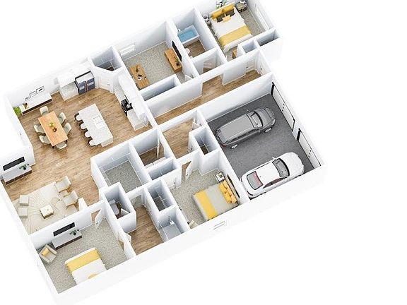 The one-level Cali plan provides an efficient, four-bedroom, two-bath design in 1,774 square feet. One of the unique features is the integration of the kitchen, breakfast area and great room in an open concept design perfect for entertaining. Enjoy early morning coffee or quiet evenings under the shaded covered patio. The bedroom on-suite is your private getaway with a shower, double vanity and large walk-in closet. A two-car garage, laundry room and pantry provide utility and storage. Quality materials and workmanship throughout, with superior attention to detail, plus a one-year builders' warranty. Your new home also includes our smart home technology package!