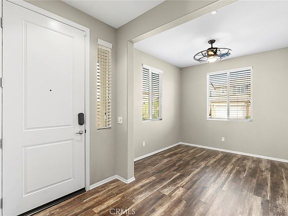Price Improvement! This stunning upscale 2 story home is located in the private gated “Serrano Ridge” Community, which is a private Community in Sycamore Creek in Corona. So much attention to detail in this newer, upscale home. High ceilings, boosting an open and airy 2220 square feet, offering 3 large oversized bedrooms and 2 ¼ baths. Master bedroom is downstairs. Neat barn door in master bathroom area to create privacy when desired. Beautiful tile in master bath as well as upstairs bathroom. Both have double sinks. ¼ bath powder room downstairs. Large spacious inviting loft upstairs. Classy, rich vinyl laminate floors all downstairs. Neutral carpet, cool ceiling fans, designer light fixtures, central heat and air, cozy gas fireplace, custom window coverings, can recessed lights. Rheem tankless instant hot water heater for endless hot water. Cooks’ kitchen with flashy granite countertops and subway backsplash and upgraded black and stainless-steel appliances. White cabinetry. Farm stainless steel sink. Convenient indoor laundry. Entertainers’ backyard!!! Large, flat, pool size backyard completely landscaped with beautiful trees and plants. Sprinklers and drip system. Neat Pergola. This master planned Community offers a private pool area, gym exercise room. Clubhouse, hiking trails. BBQ, outdoor cooking area, playground, dog park, sports court and more. Close to shopping, medical, schools and freeway.